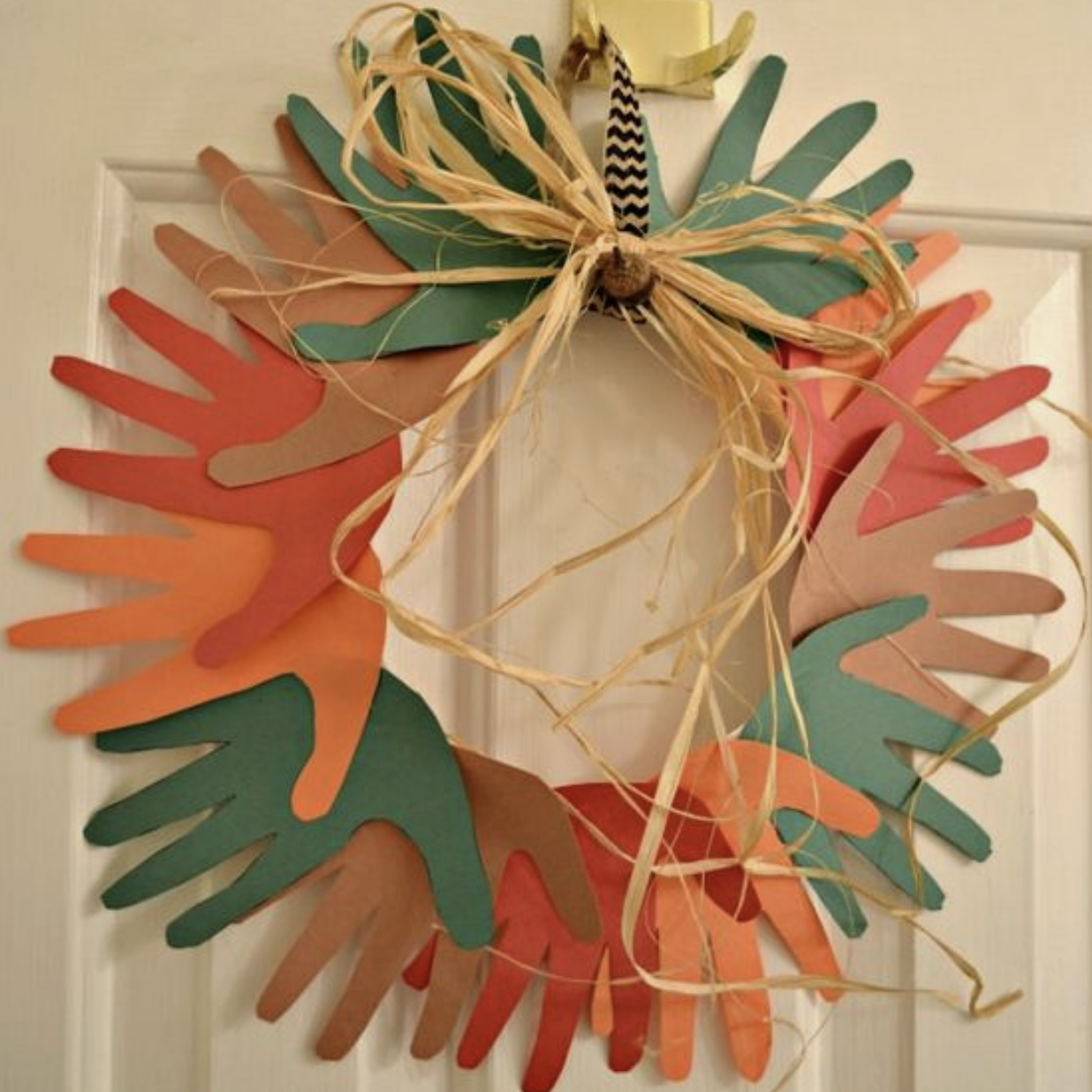Keep it simple by tracing little hands, or go all out at the craft store to spruce up your front door.