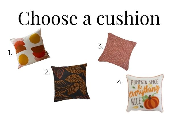 To start, pick a cushion. This could be for your couch, bed, or a cozy reading chair.