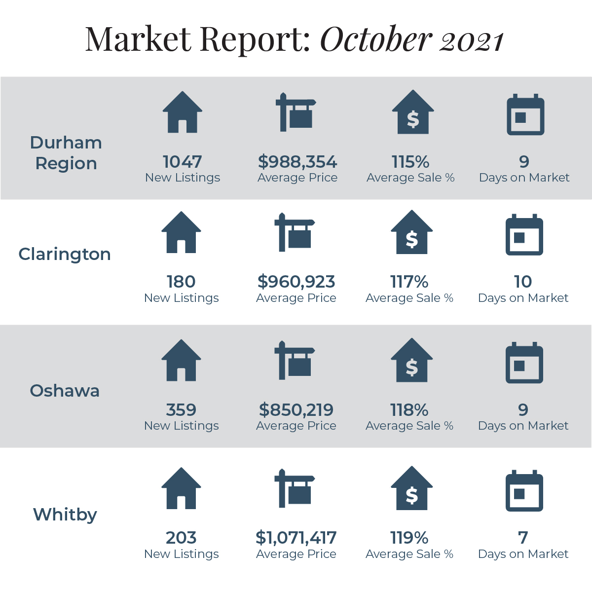 We've rounded up the latest Real Estate stats for Durham Region. More specifically, we look at Clarington (includes Courtice, Bowmanville, Newcastle, and Orono), Oshawa, and Whitby (includes Brooklin). If you'd like to learn more about a community not featured in our report, please let us know and we'd be happy to talk real estate.